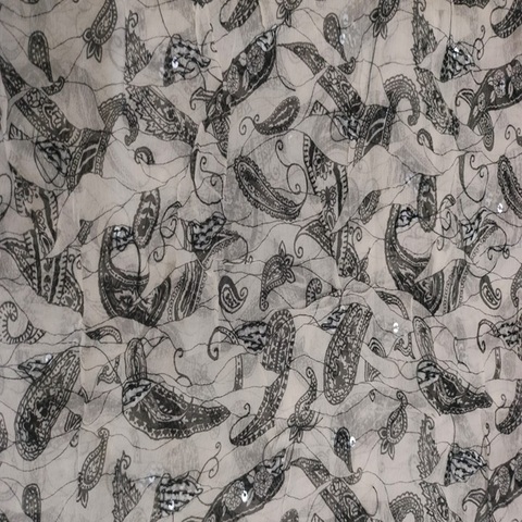Ricamato a mano con stampe su tessuto Chiffon di seta